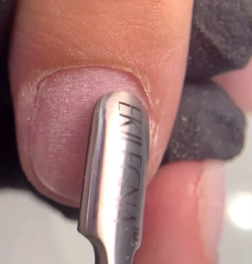 Place near cuticle or working area of nail with care since pusher is sharp to avoid bleeding, push toward the nail growth. After lifting cuticle gently move side to side for better lifting (do not scratch nail to avoid damage to nail bed). If using for gel polish removal after applying acetone or gel removal gently scratch the desire material until its out.